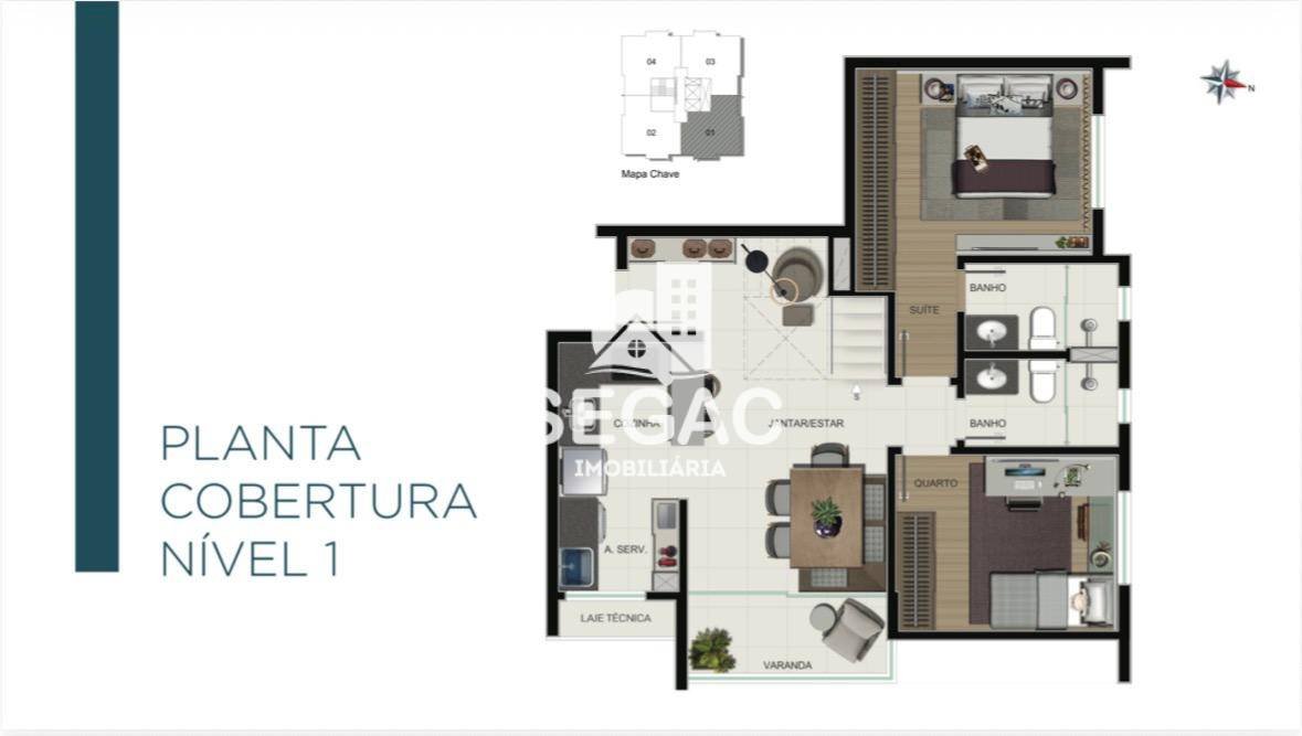 Cobertura apto 1004, área interna 85,41, área externa 43,90, 2 Quartos, 1 Suite, 02 Banhos, 02 Vagas - Valor 1.450.000,00